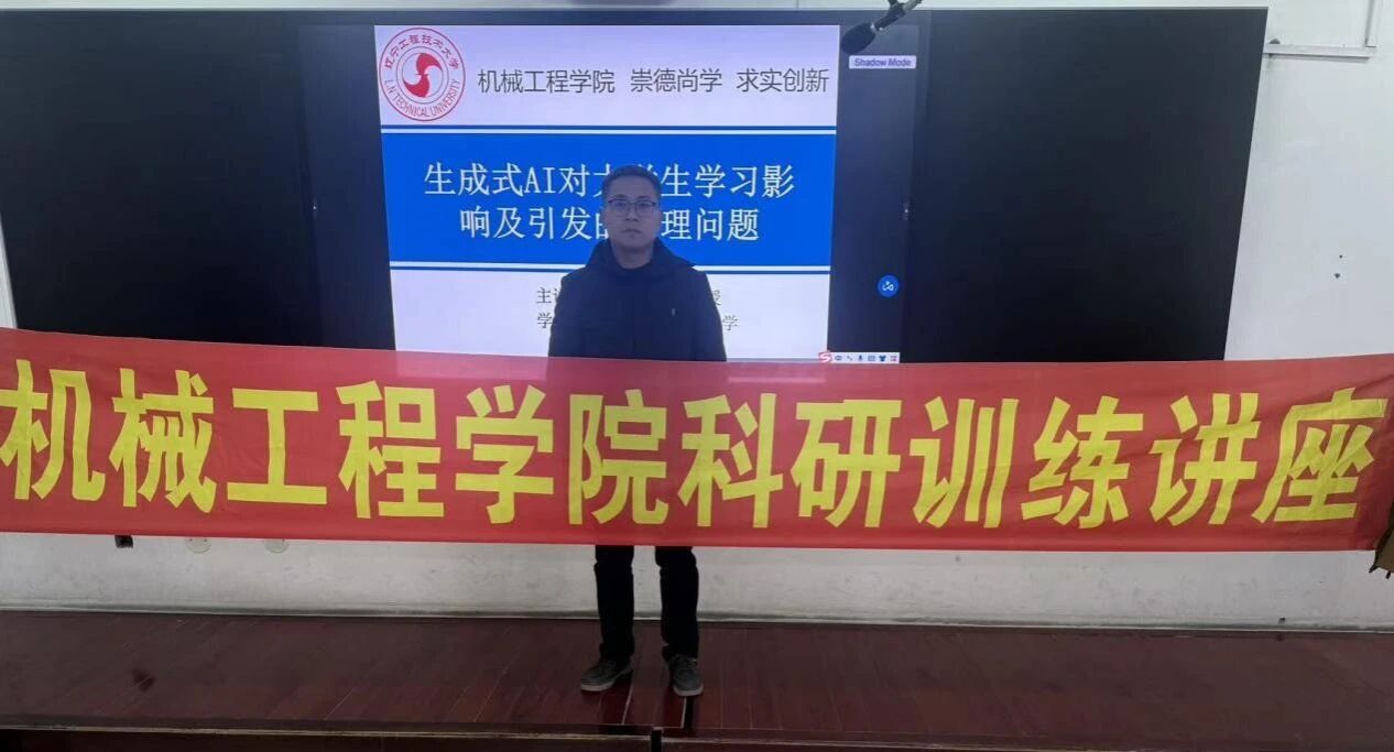 2025年10月29日,学院举办了以“生成式AI对大学生学习影响及引发的伦理问题”为主题的科研训练讲座。本次讲座由戴卫兵老师主讲,旨在通过生成式AI内涵讲解、实践操作与科研训练相结合的模式,帮助学生解决生成式AI对大学生学习影响及引发的伦理问题。参加本次科研训练的为机械设计制造及其自动化专业24级同学。