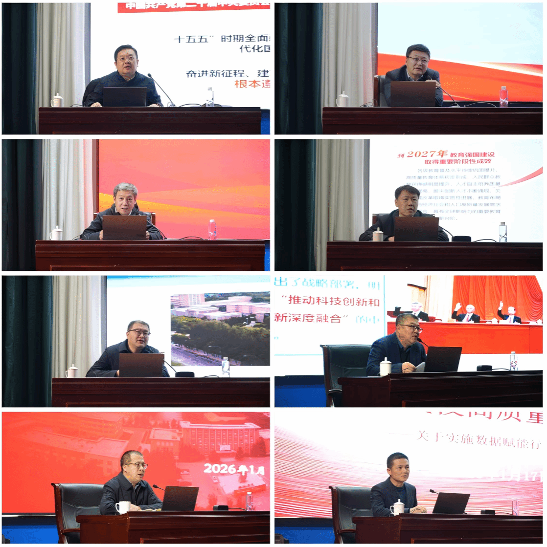 本次培训紧扣全会精神与高校发展实际,采取线下教学、集中授课与分组交流研讨相结合、校领导讲授与校外专家讲授相结合的方式进行。培训期间,校党委书记岑松,校党委副书记、校长马修泉,校党委副书记于海臣,党委常委、副校长韩军、荣德生、王东、付海波,副校长伍复发结合分管工作分别围绕《干部在学校高质量发展中的担当》《守住底线、防范风险——领导干部依法治校能力提升》《健全思想政治工作体系,为学校高质量发展提供坚强保障》《固本培新、提质增效——“十五五”学科发展的思考》《锚定招生生命线、筑牢学校高质量发展之基石》《推动科技创新和产业创新深度融合,助力“辽工程”高质量发展》《筑牢根基、突出主题、守住底线,提高人才培养质量》《在数字化转型浪潮中谱写我校高质量发展新篇章——关于实施数据赋能行动工程的思考》主题作专题辅导报告。