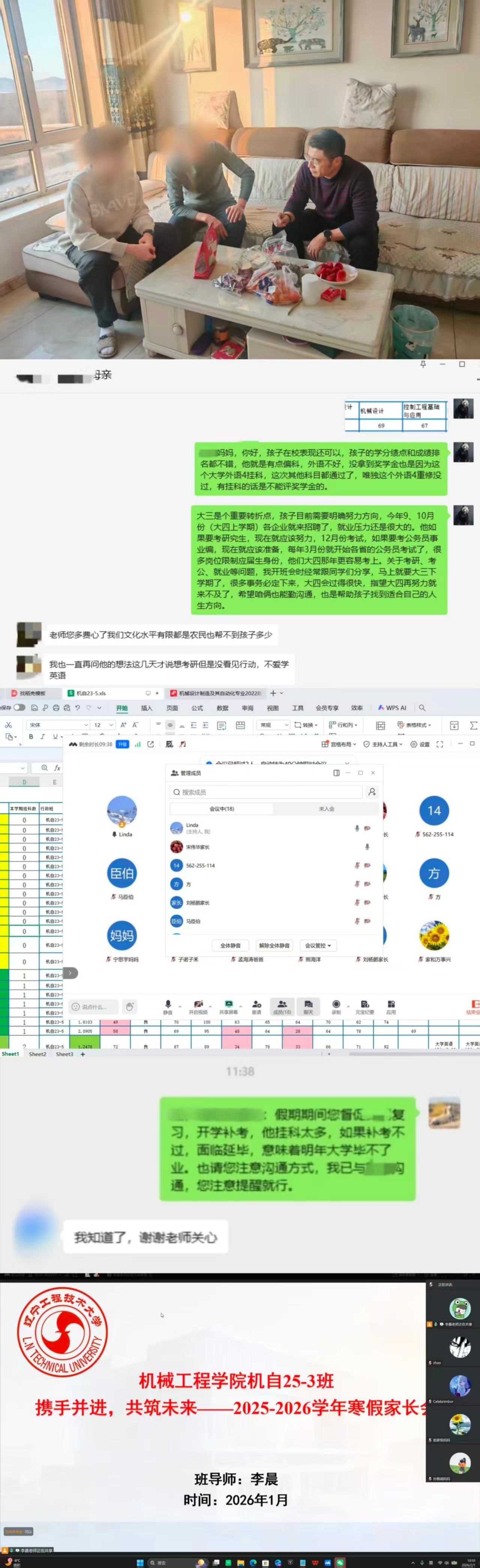 寒假期间,学院各班导师结合班级实际,灵活开展线上线下相结合的家访与家长会。部分班导师深入学生家庭开展入户家访,与家长面对面倾心交流、精准沟通。其他班导师则通过云端相聚,全面反馈学生在校学习状态、日常表现,细致开展寒假安全教育,重点强调交通安全、消防安全、网络安全与反诈防范;同时围绕学业规划、习惯养成、心理调适等内容与家长深入交流,共商育人举措,搭建起家校沟通“连心桥”,让关爱与引导不断线。