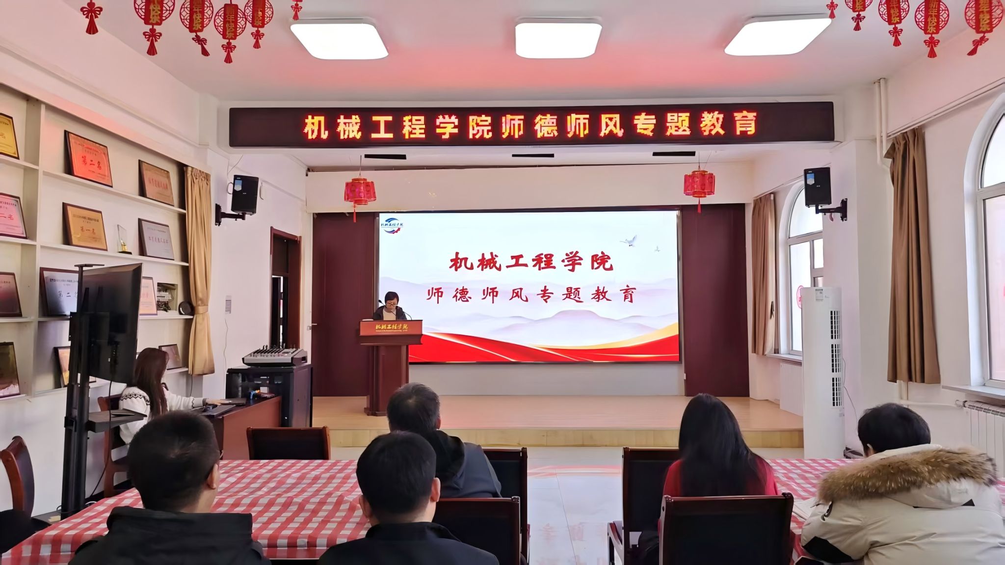 党委副书记刘学茹传达了学校关于师德师风建设的相关文件精神,并结合典型案例开展警示教育。通过深入剖析案例、解读政策要求,为全体教职工敲响了师德师风警钟,引导大家进一步强化责任意识、严守职业底线,自觉践行新时代教师职业行为准则。